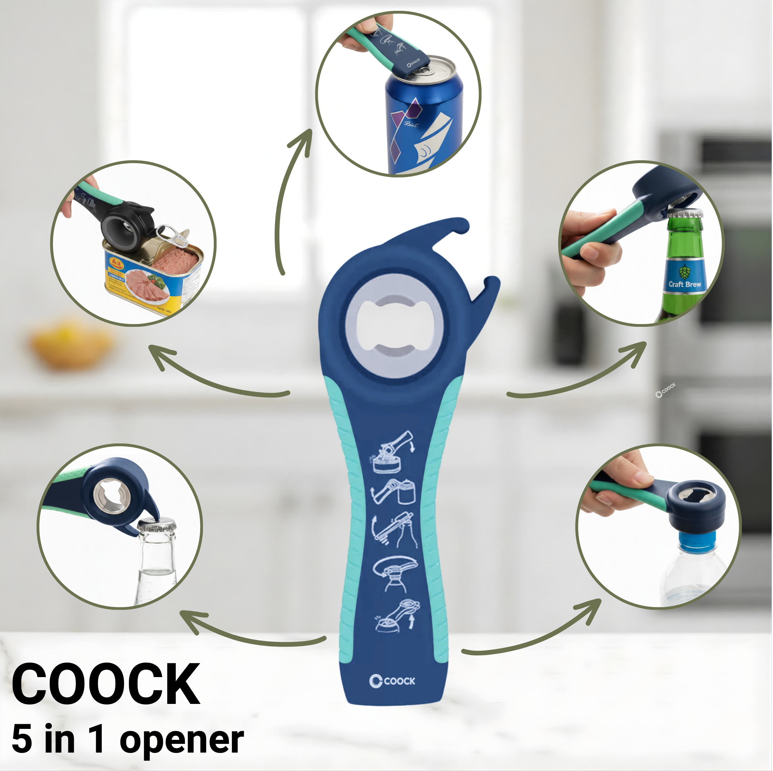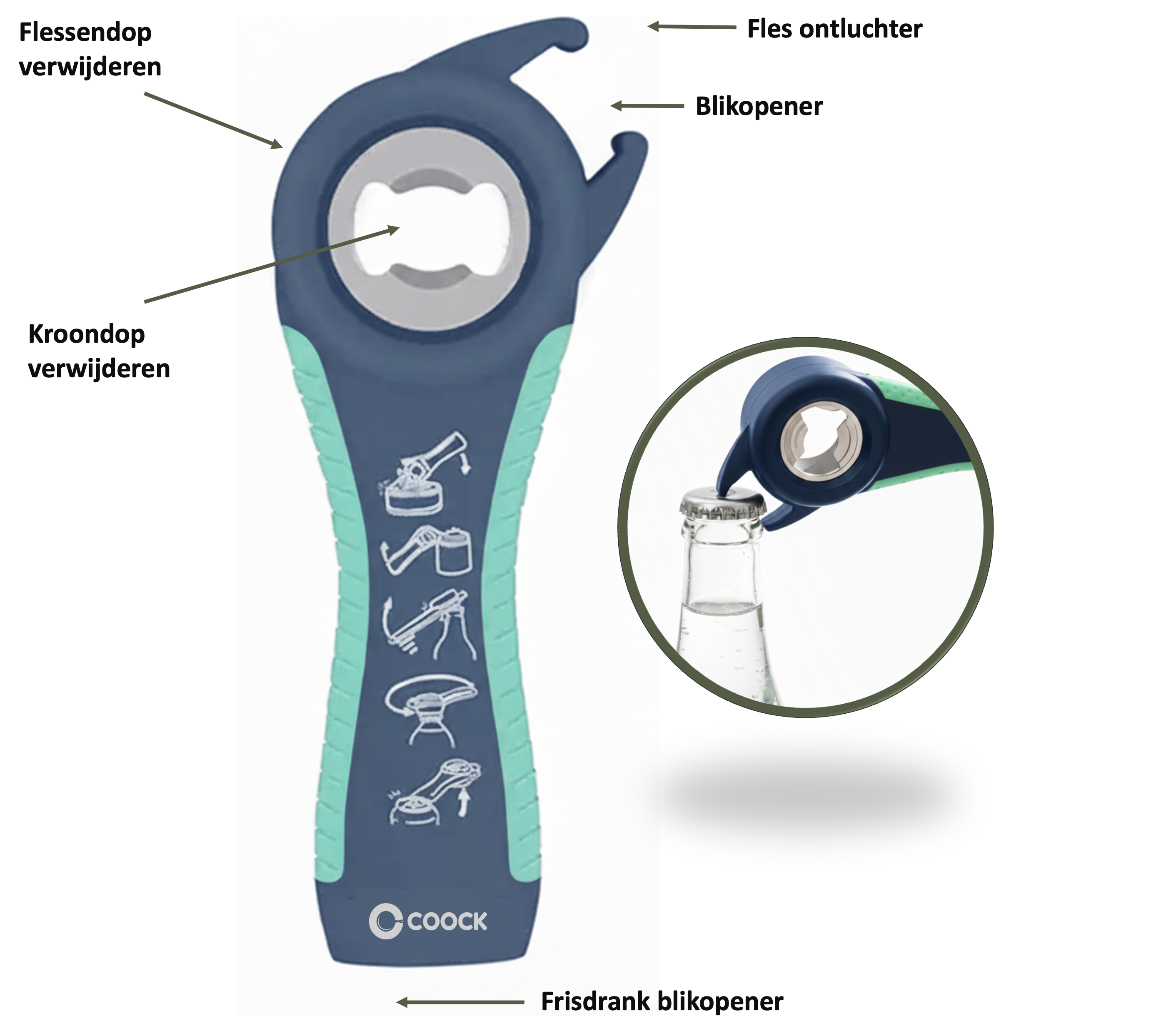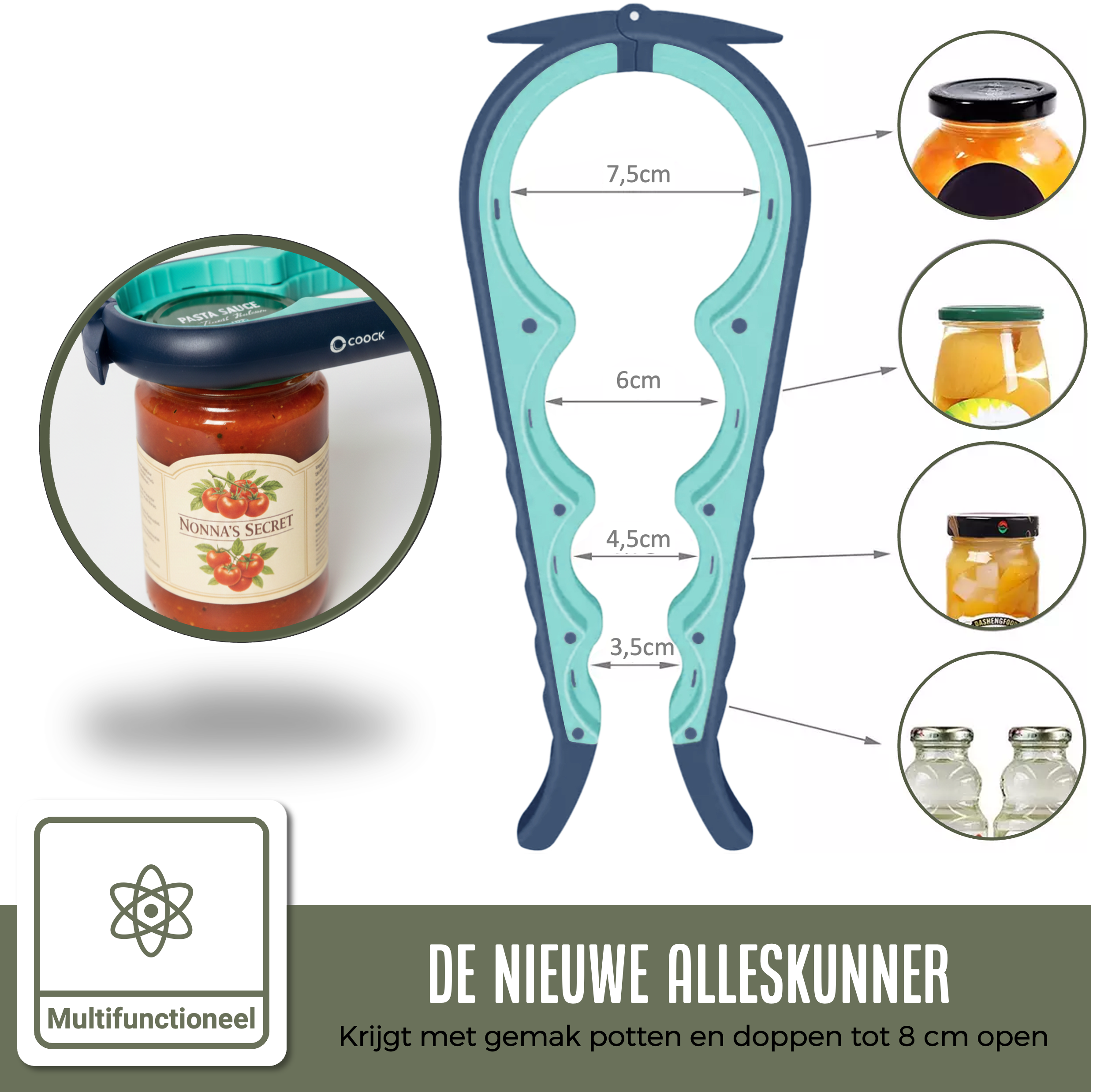Allesopener - Multifunctionele Opener - 7-in-1 Potopener - Keuken Hulp - Flesopener – XL Hulpmiddelen voor Ouderen - Blauw