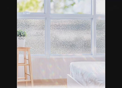 With this Homewell 3D anti-glare window film with rainbow effect you have No more problems with bright sunlight, dazzling light or curious passers-by . The sun protection Mosaic window film blocks UV rays and keeps the summer heat outside. The special breathable coating makes the window film suitable for HR+ and HR++ double glazing . Simply place the self-adhesive window film on the glass and enjoy more privacy wherever you want. The foil is suitable for almost any room in the house . The high-quality PVC ensures that the window film remains in good condition for years!