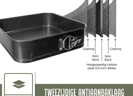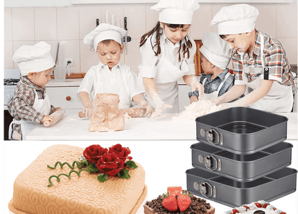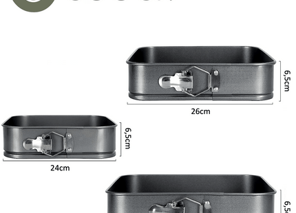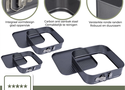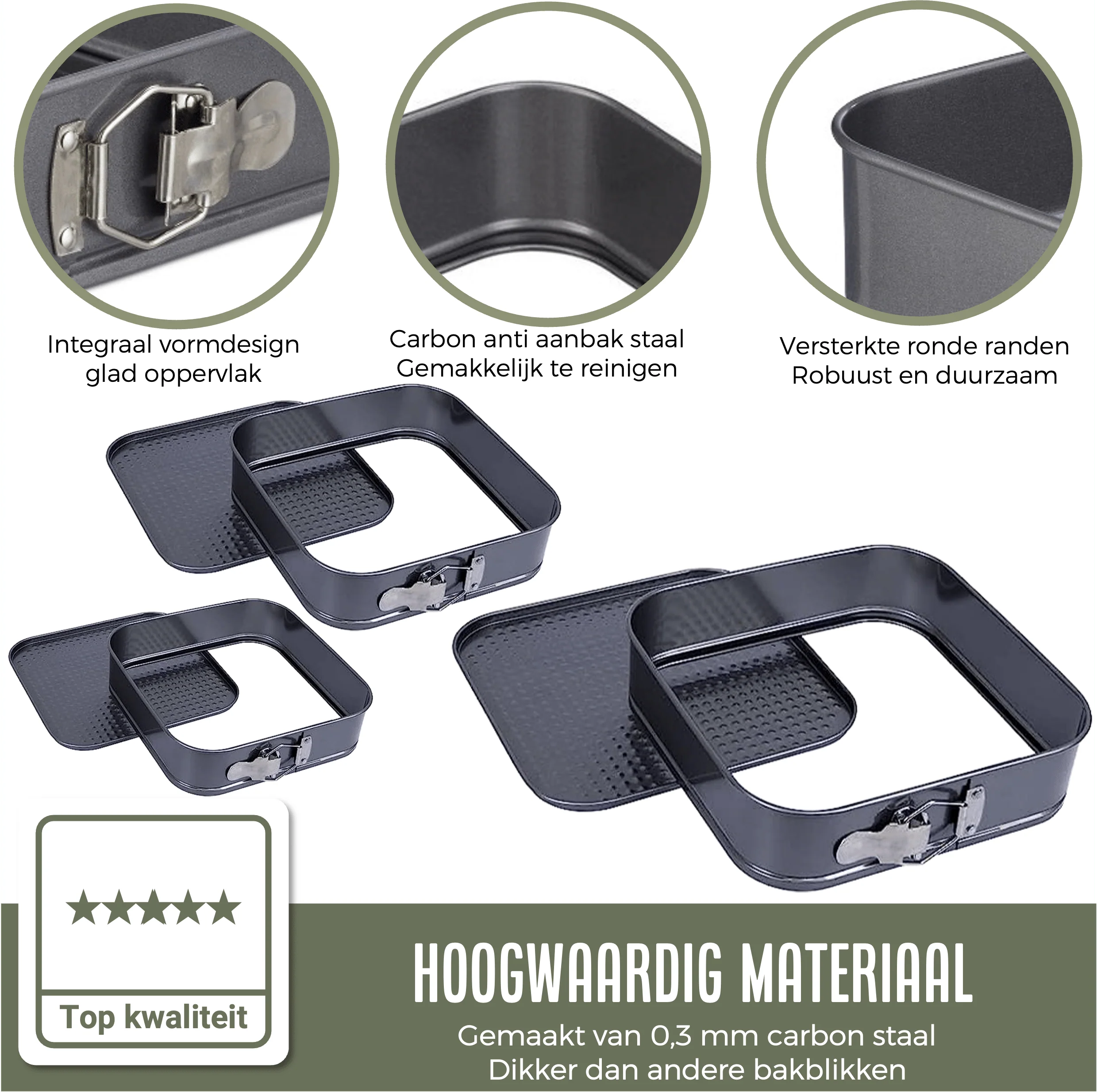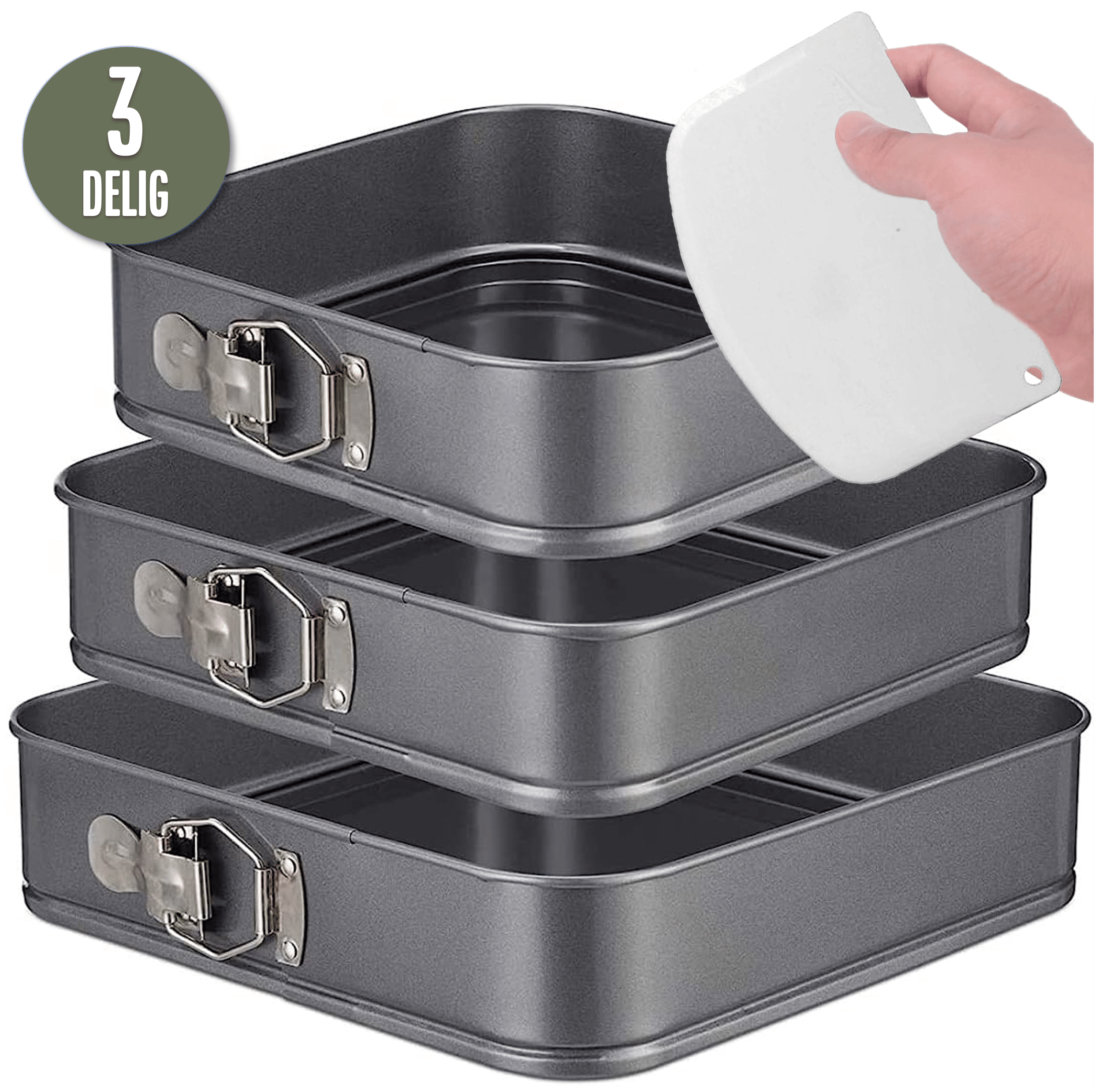 3-Delige Springvorm Set Vierkant met Antiaanbaklaag - 24 tot 28 Cm Diameter -Cakevorm Incl. Deegschraper & E-Book