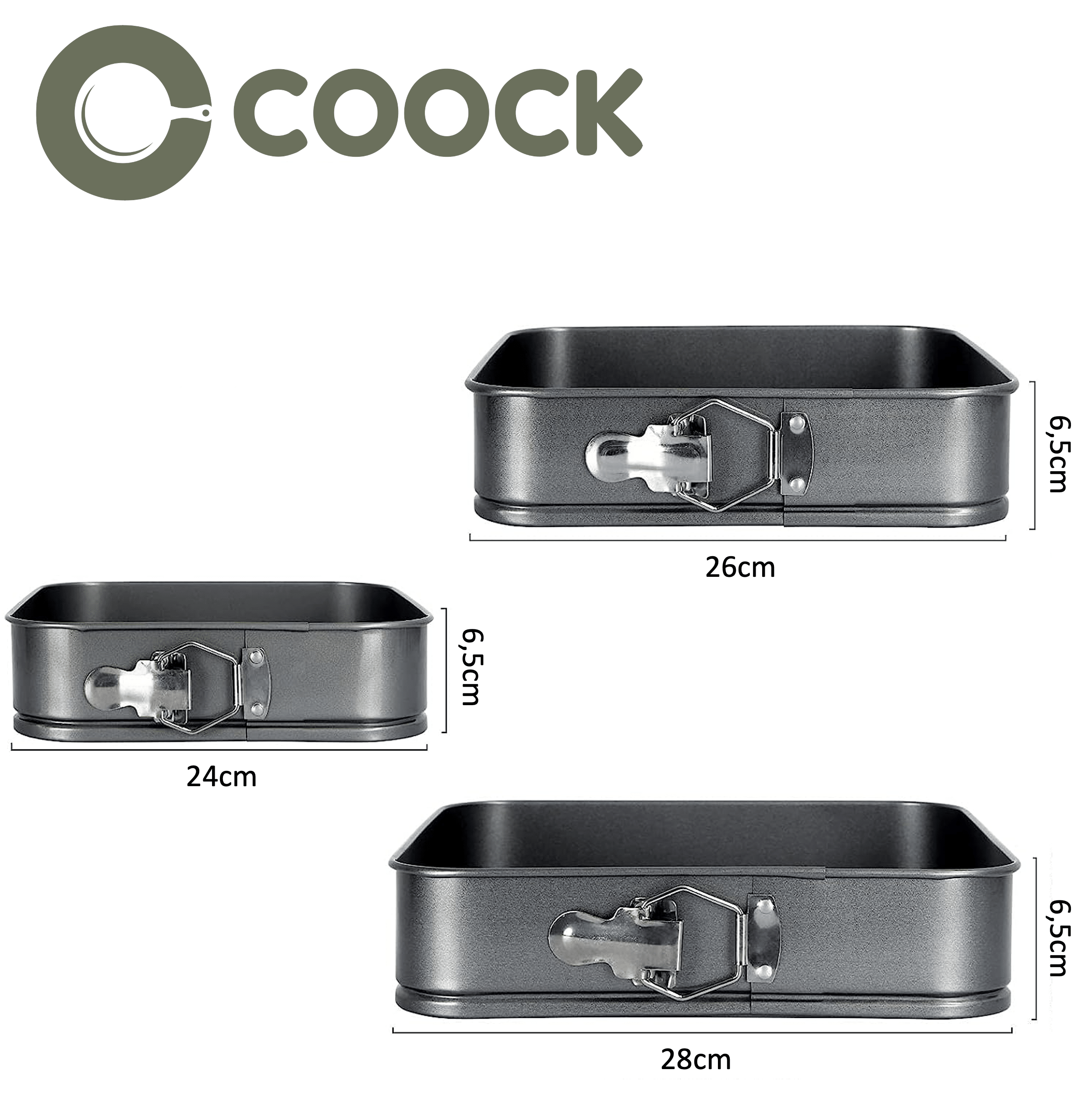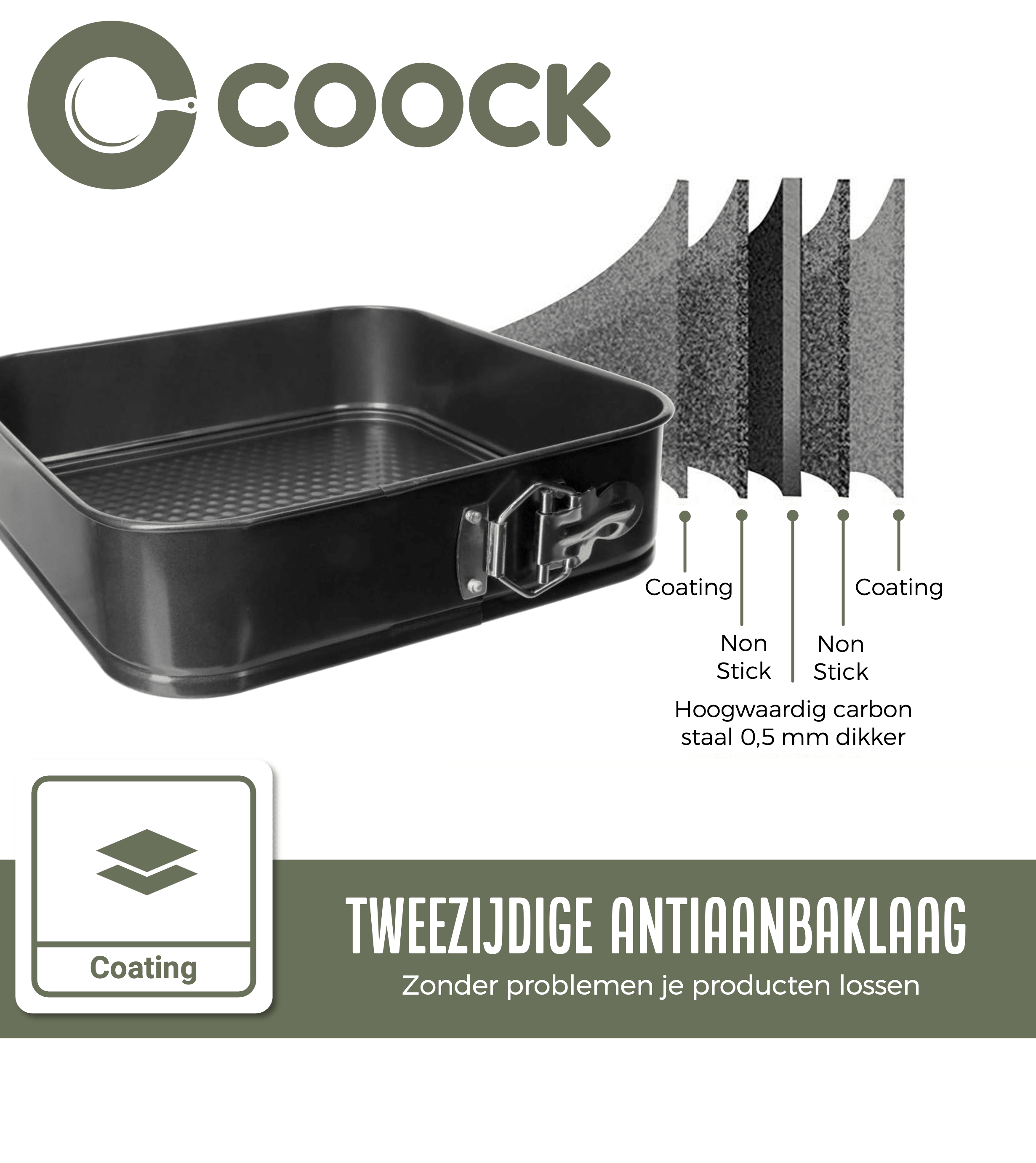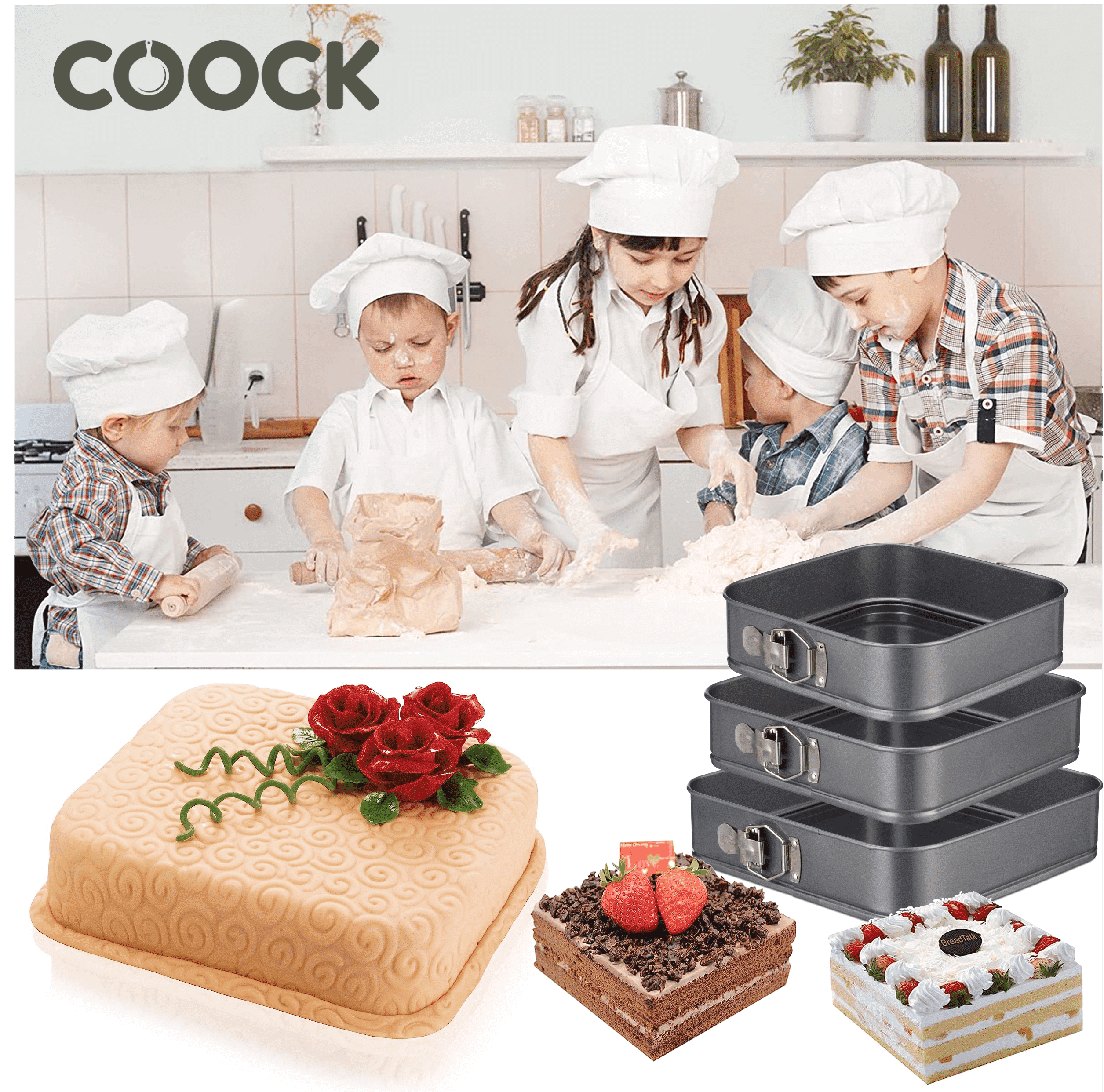 3-Delige Springvorm Set Vierkant met Antiaanbaklaag - 24 tot 28 Cm Diameter -Cakevorm Incl. Deegschraper & E-Book