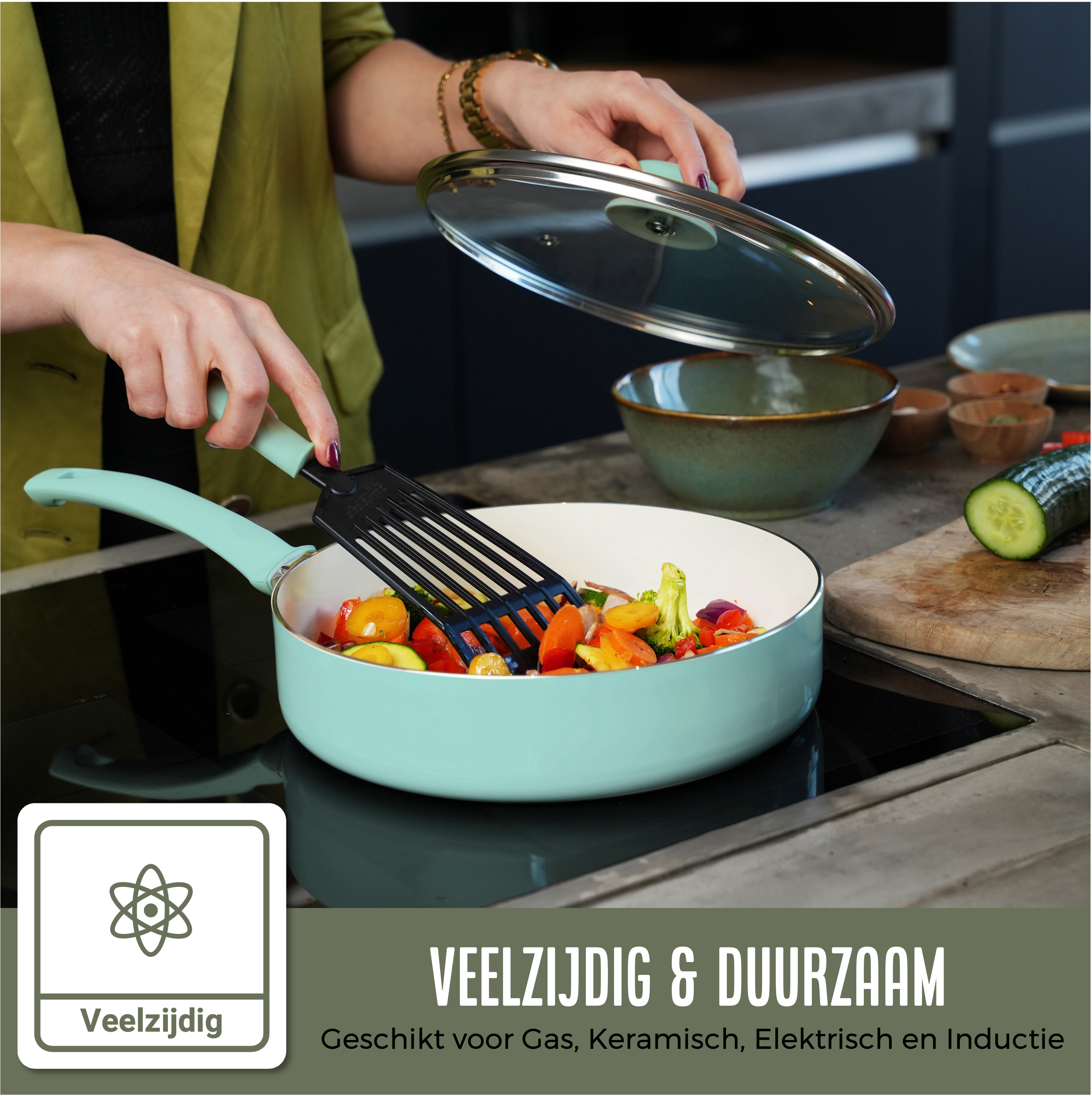 - Voor gas, keramisch, elektrisch en inductie