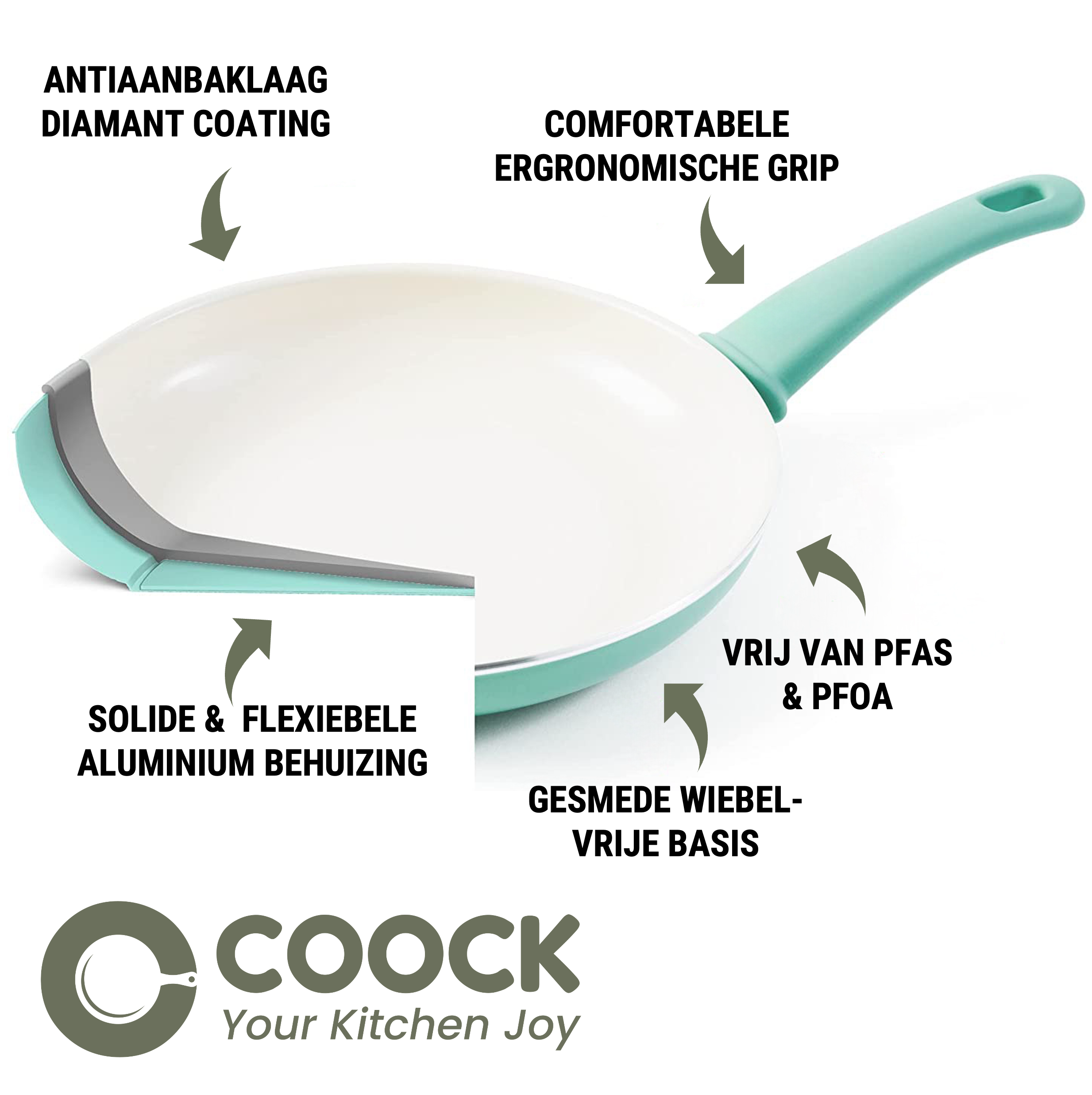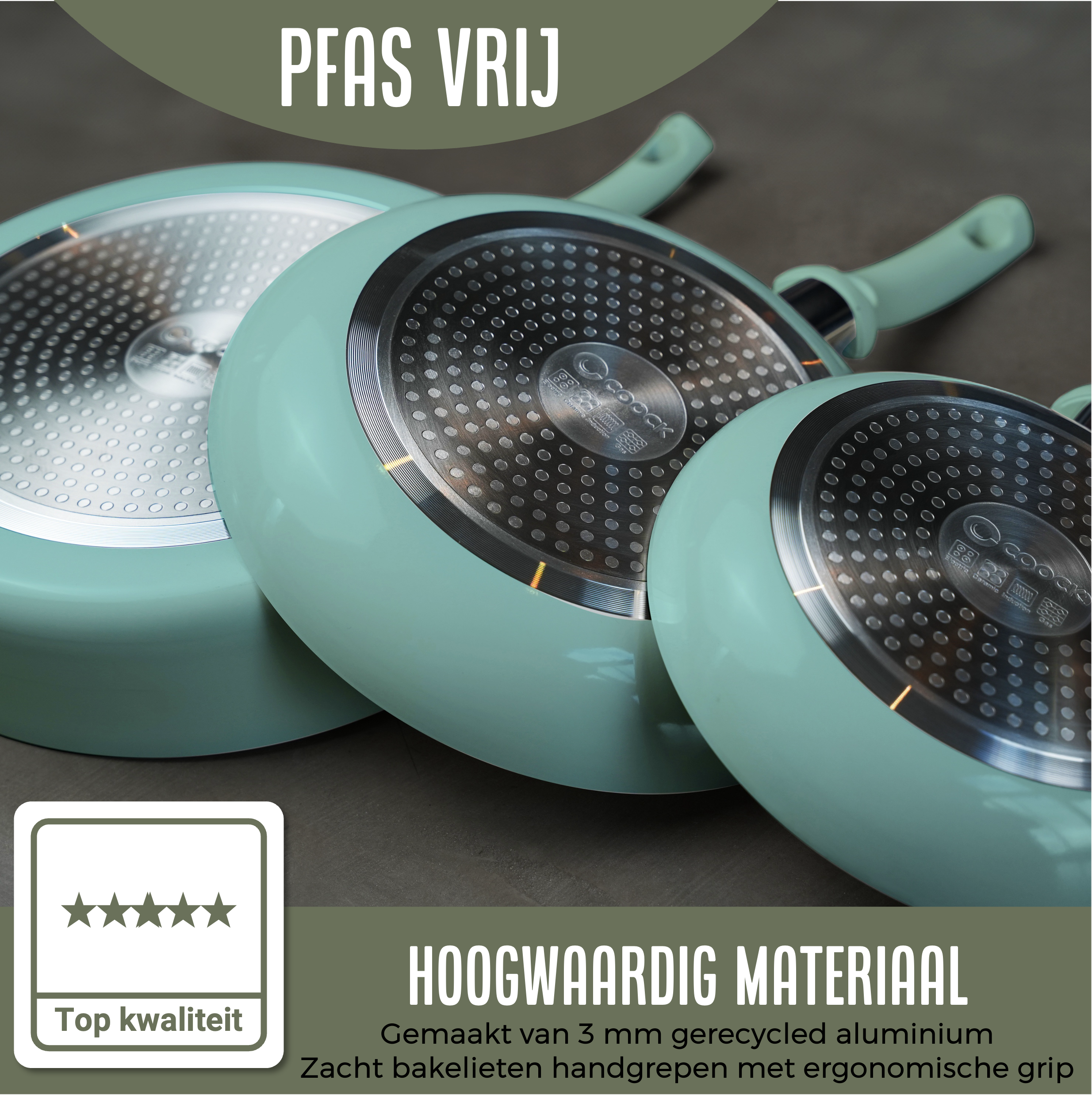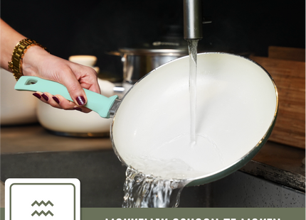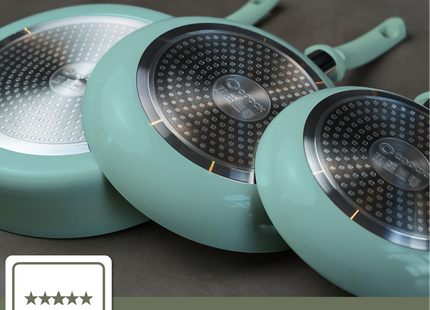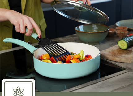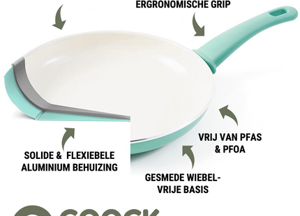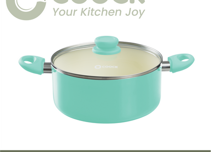 Gemaakt van 100% gerecycled aluminium en voorzien van een duurzame keramische anti-aanbaklaag, is de Coock turquoise kookpan de ideale keuze voor de eco-bewuste kok. Deze pan gaat jarenlang mee, waardoor je minder vaak een nieuwe pan hoeft aan te schaffen en je ecologische voetafdruk verkleint. De keramische coating is vrij van schadelijke stoffen zoals PFOA en PTFE, zodat je met een gerust hart kunt koken.