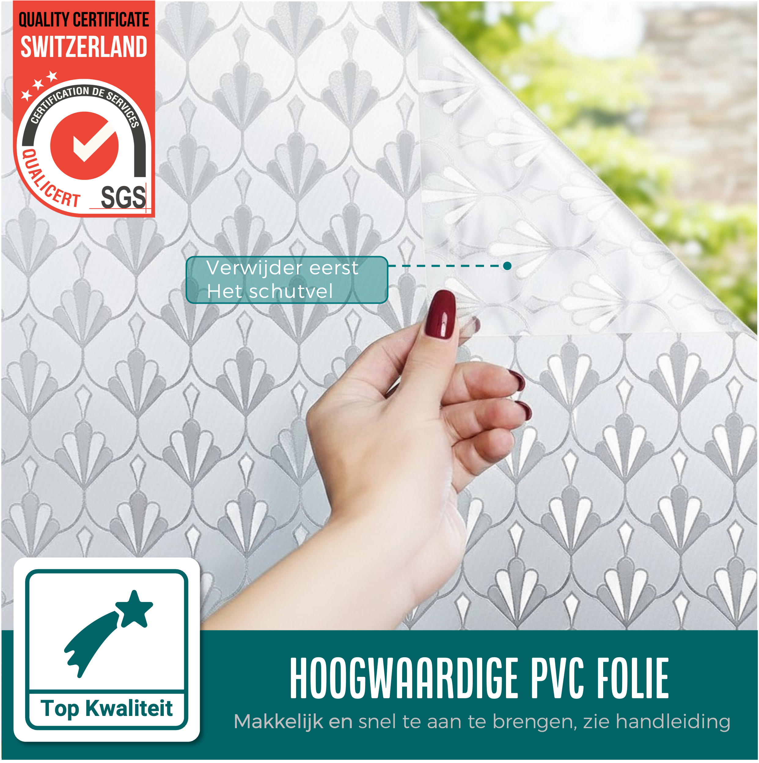 Met deze Homewell 3D anti inkijk raamfolie heb je geen last meer van felle zonnestralen, schitterend licht of nieuwsgierige voorbijgangers. De zonwerende Retro raamfolie blokkeert UV-stralen en houdt de zomerse hitte buiten de deur. De speciale ademende coating maakt de raamfolie geschikt voor HR+ en HR++ dubbelglas. Plaats de zelfklevende raamfolie eenvoudig op het glas en geniet van meer privacy waar je maar wilt. De folie is namelijk geschikt voor vrijwel iedere ruimte in huis. De hoogwaardige kwaliteit PVC zorgt ervoor dat de raamfolie jarenlang goed blijft!