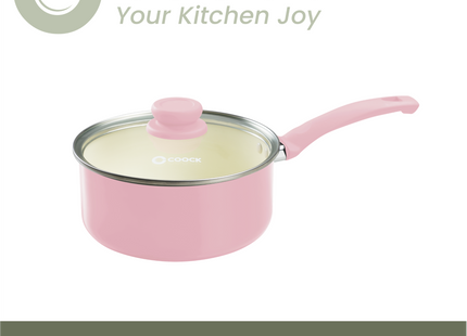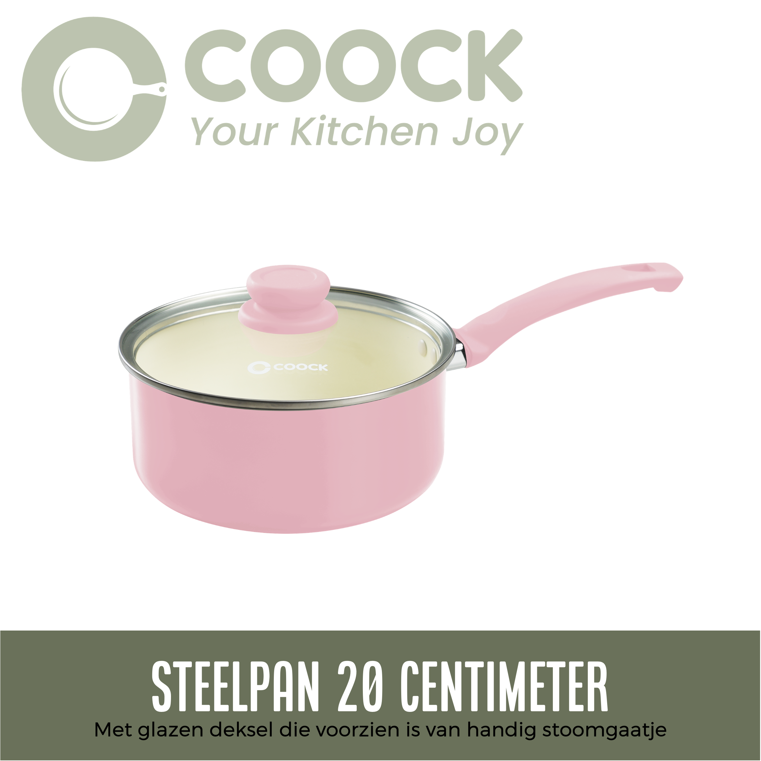 Steelpan met deksel Inductie - 2500ml - Speciale Anti-Aanbak Coating - Sauspan met Ergonomische Koudgrepen - Gerecycled Aluminium - Roze