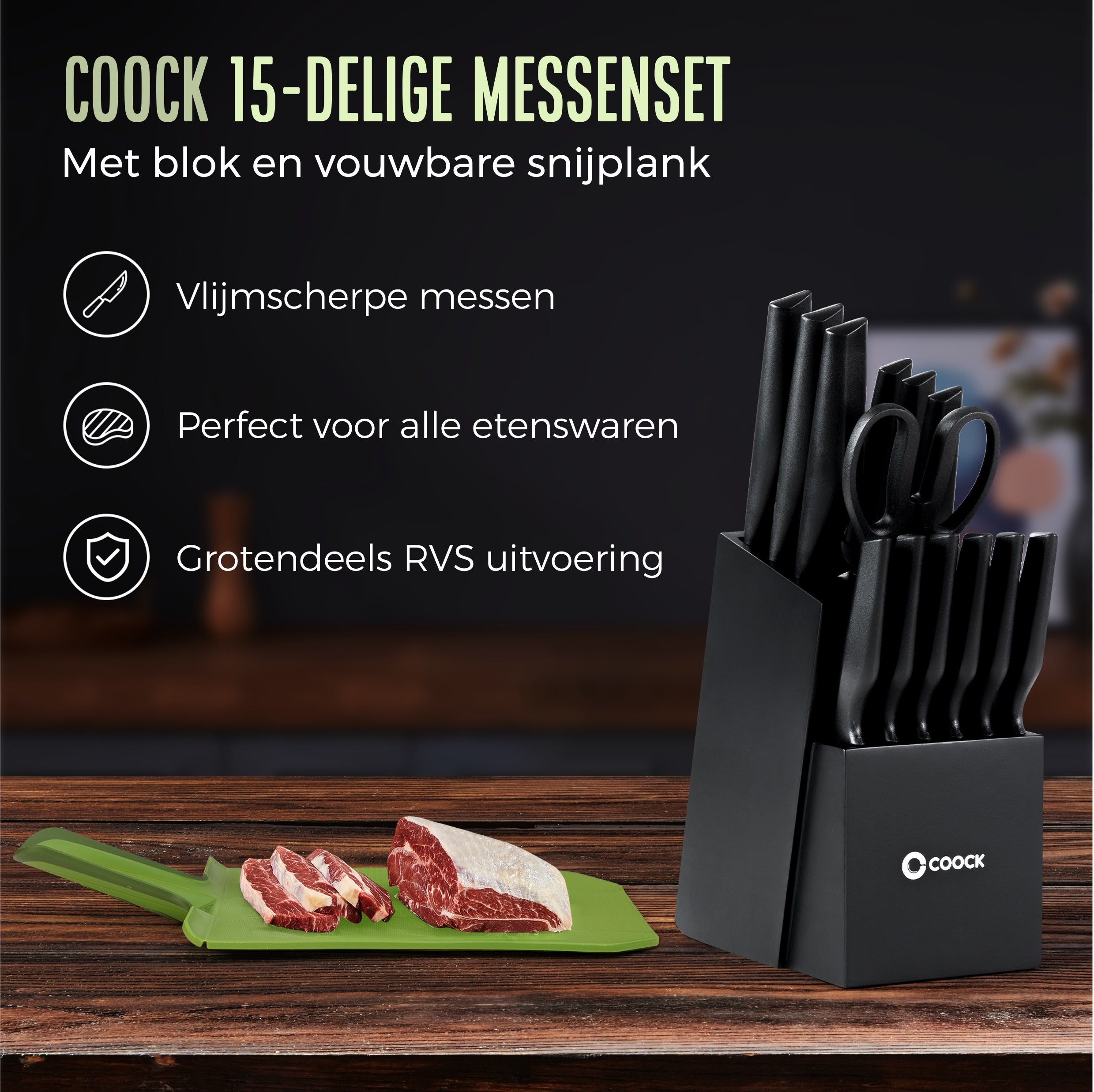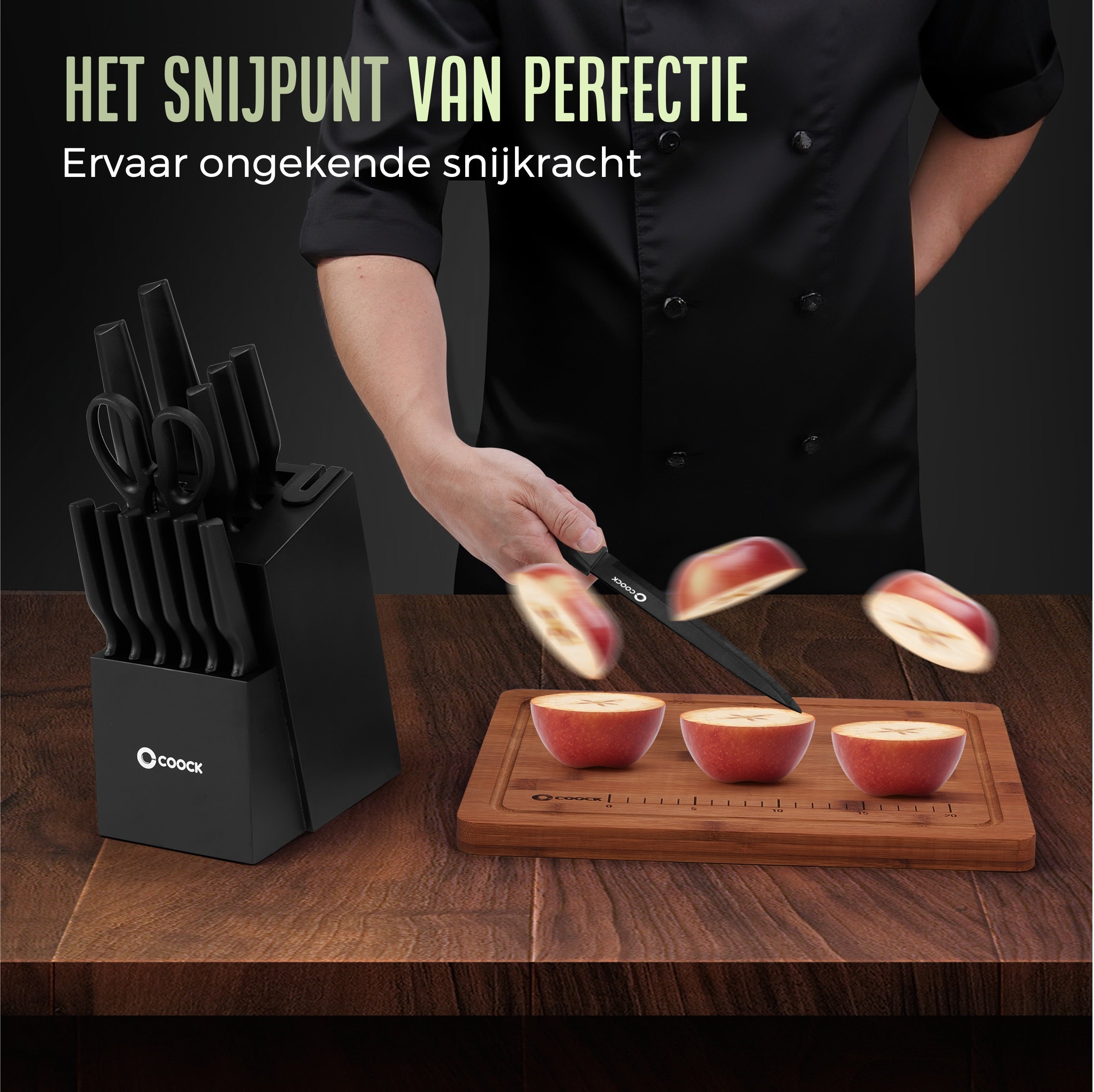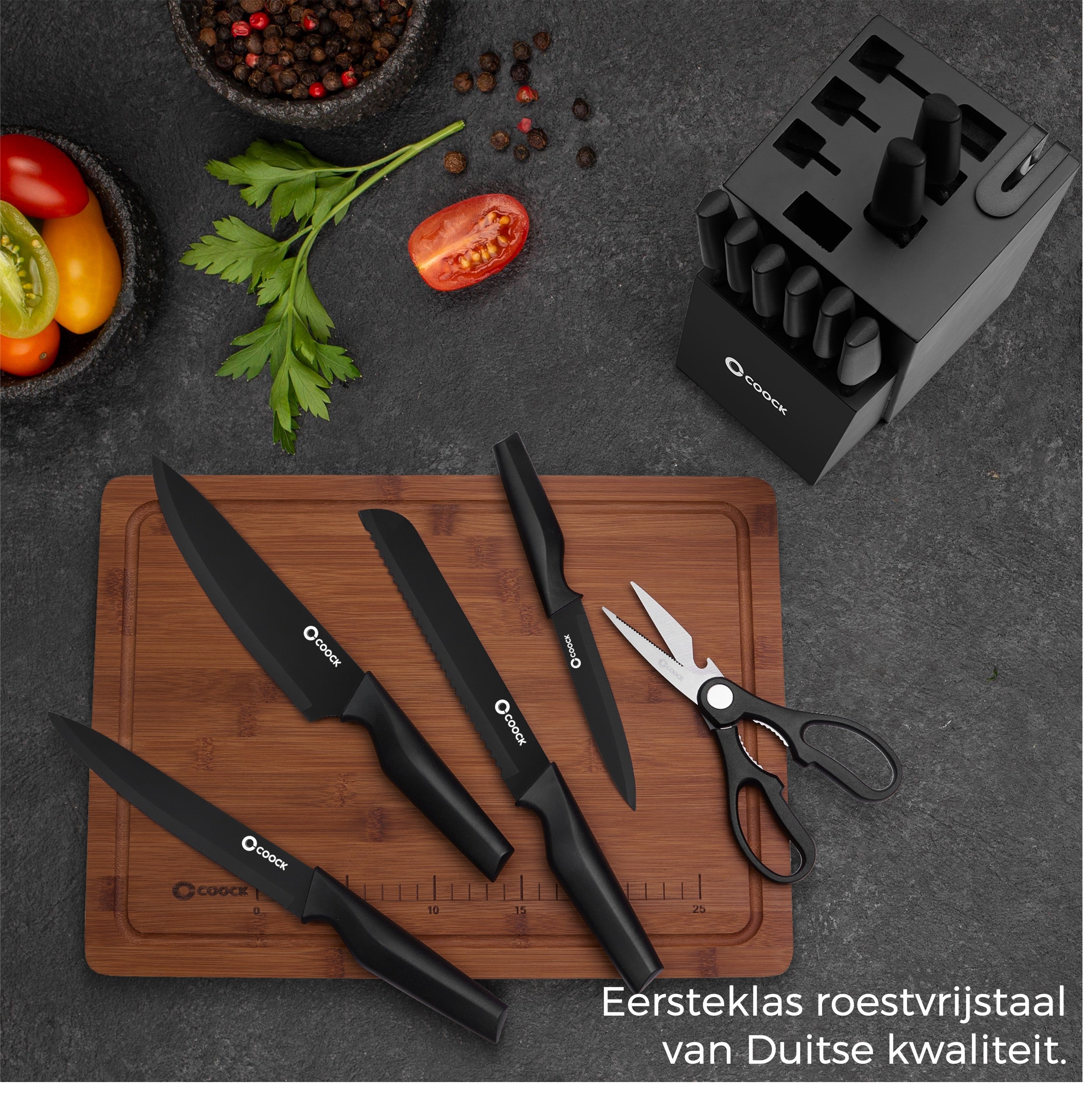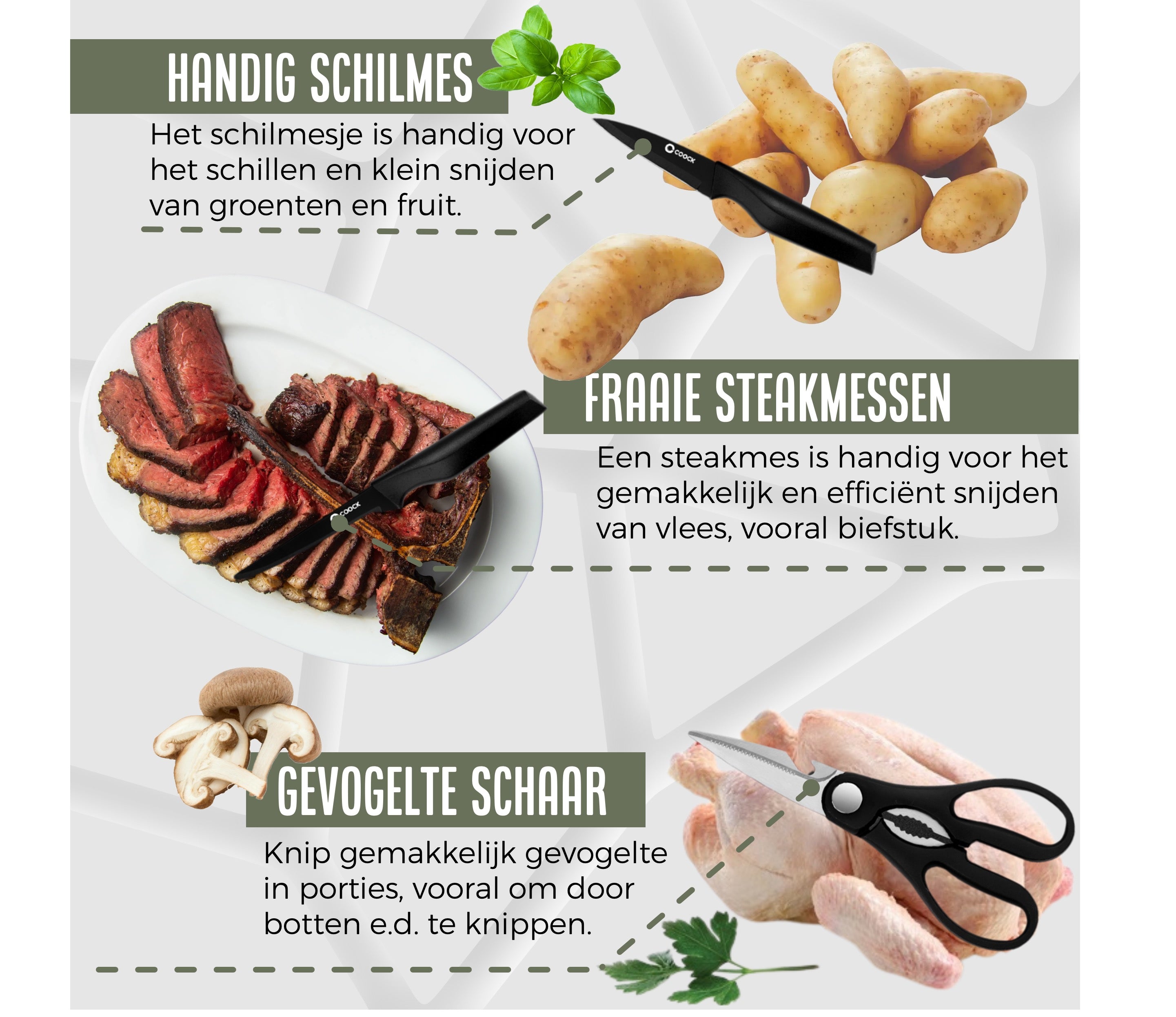 Stijlvolle Messenset met Blok en gratis Snijplank – RVS/Zwart
