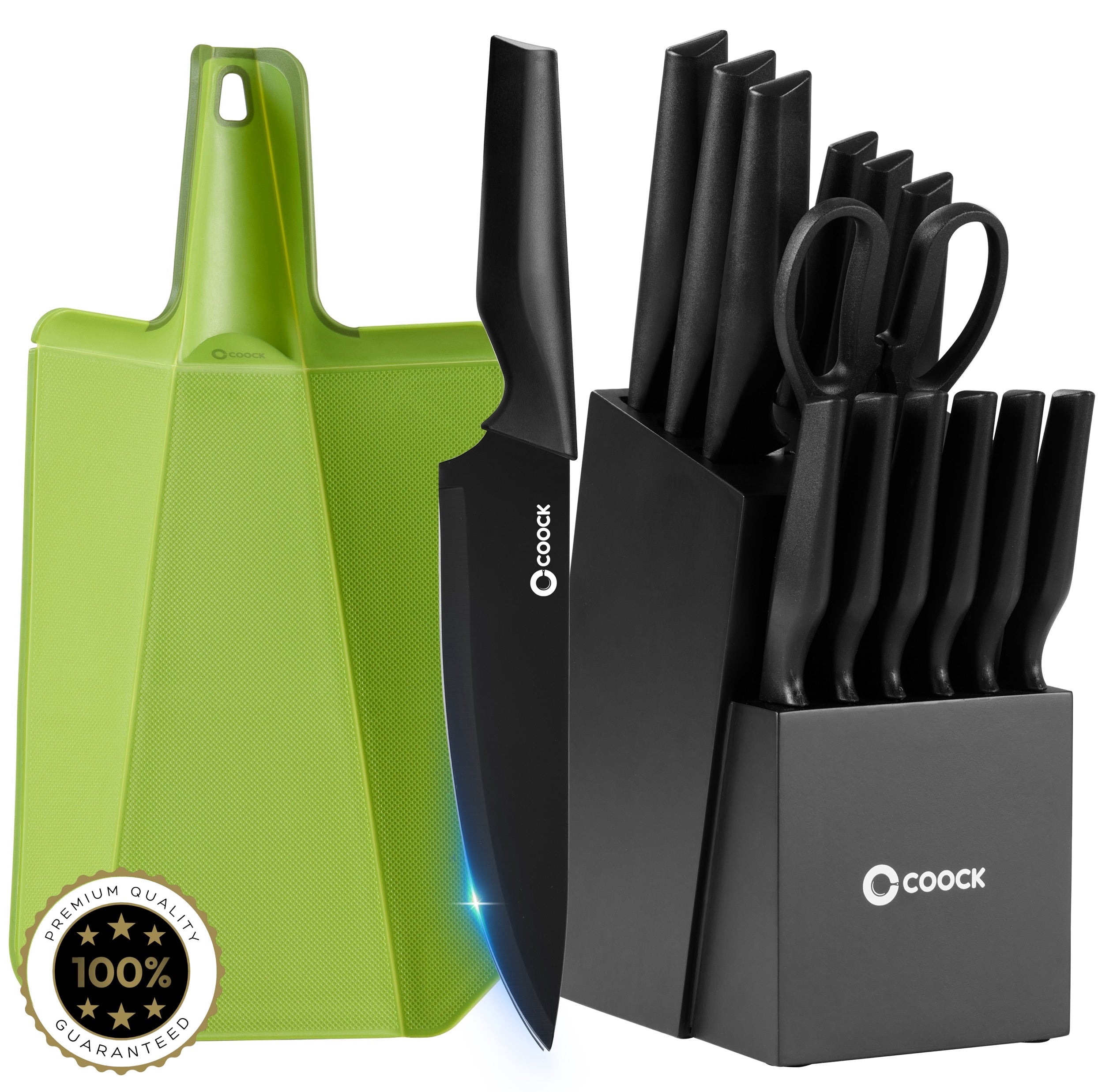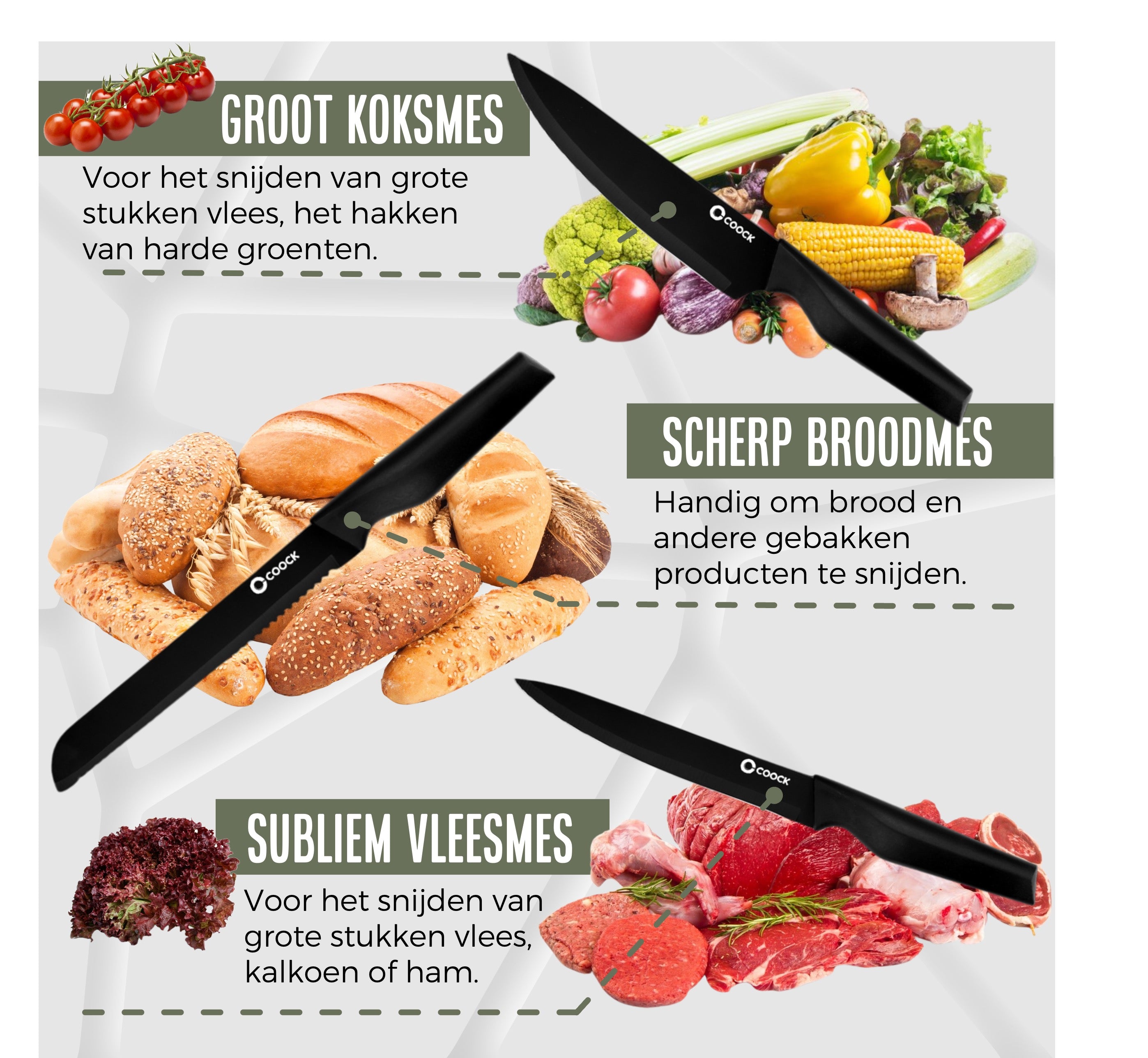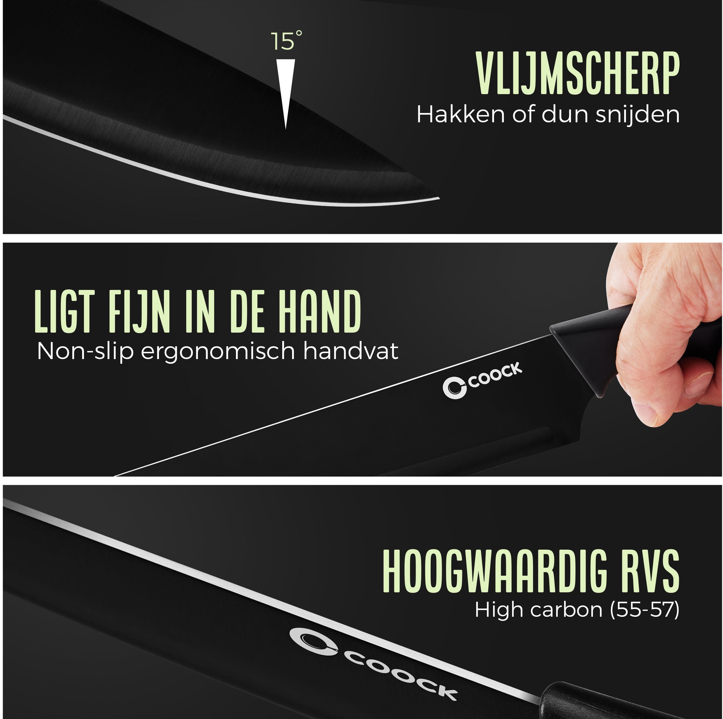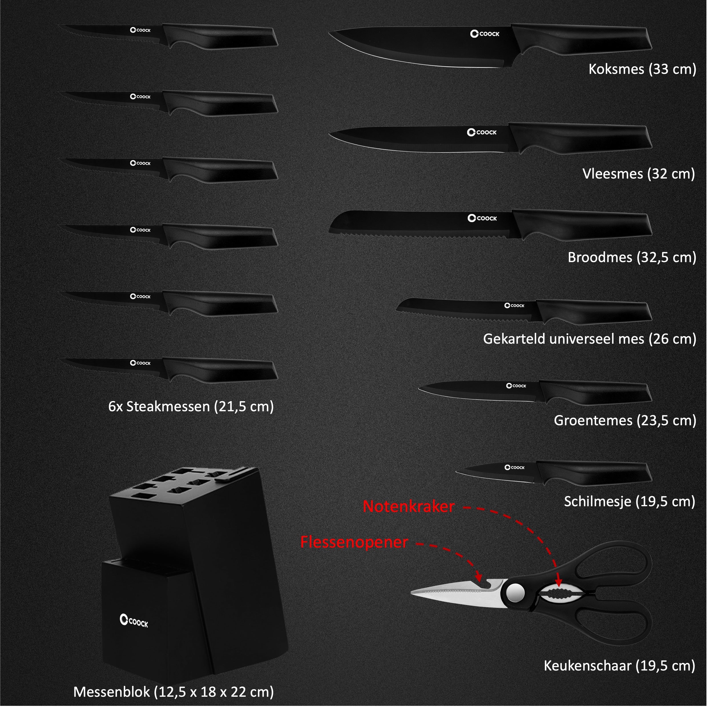 Stijlvolle Messenset met Blok en gratis Snijplank – RVS/Zwart