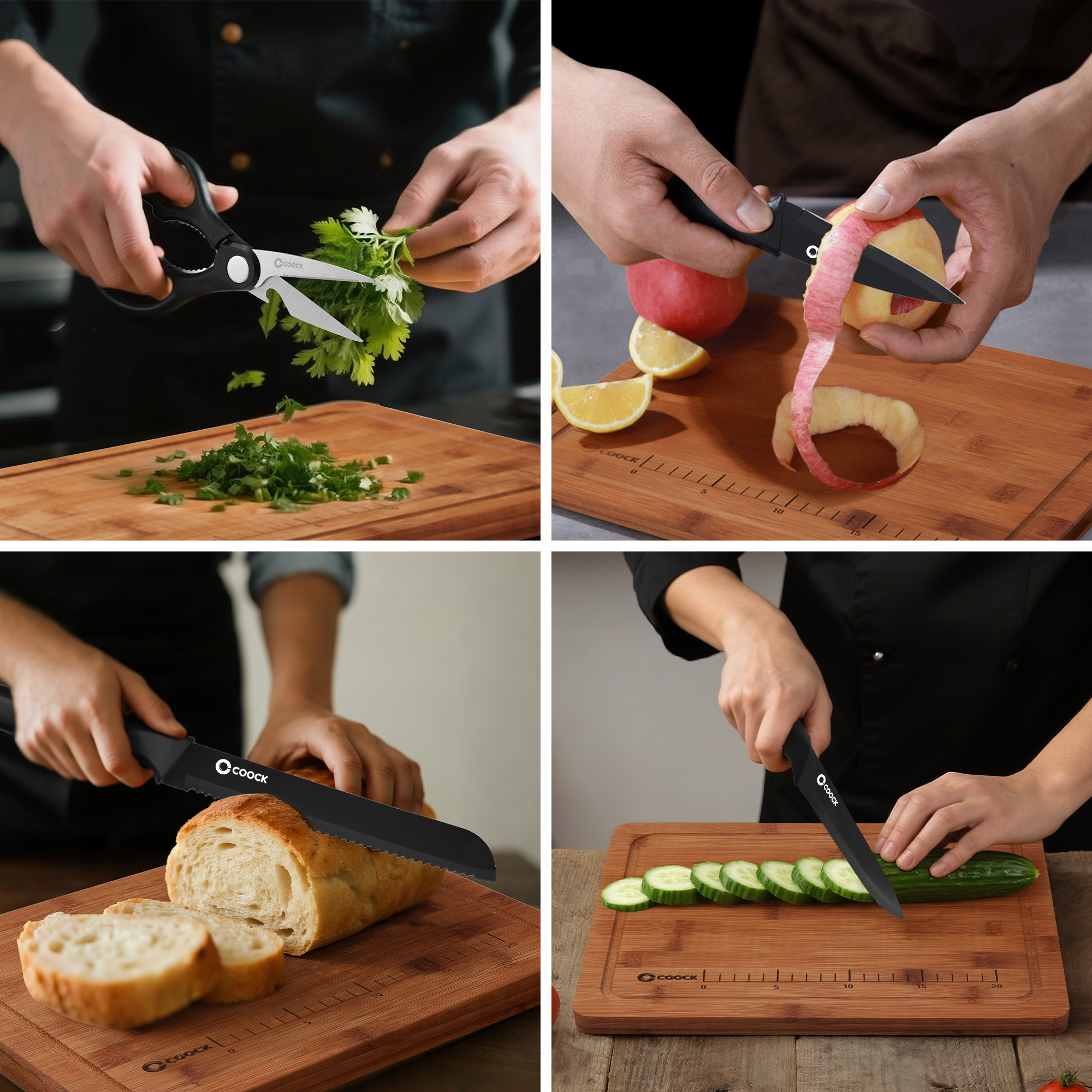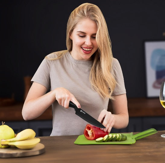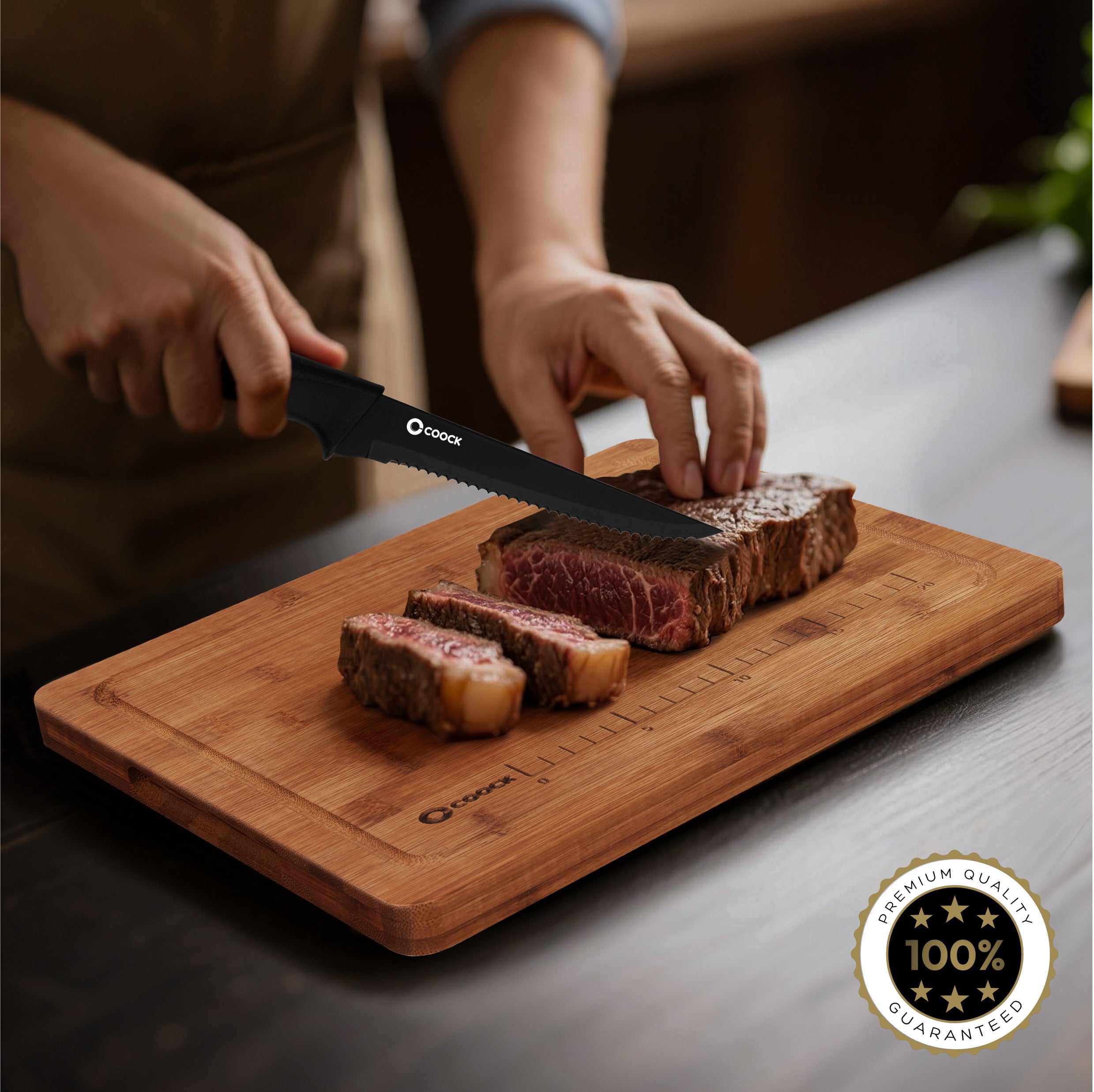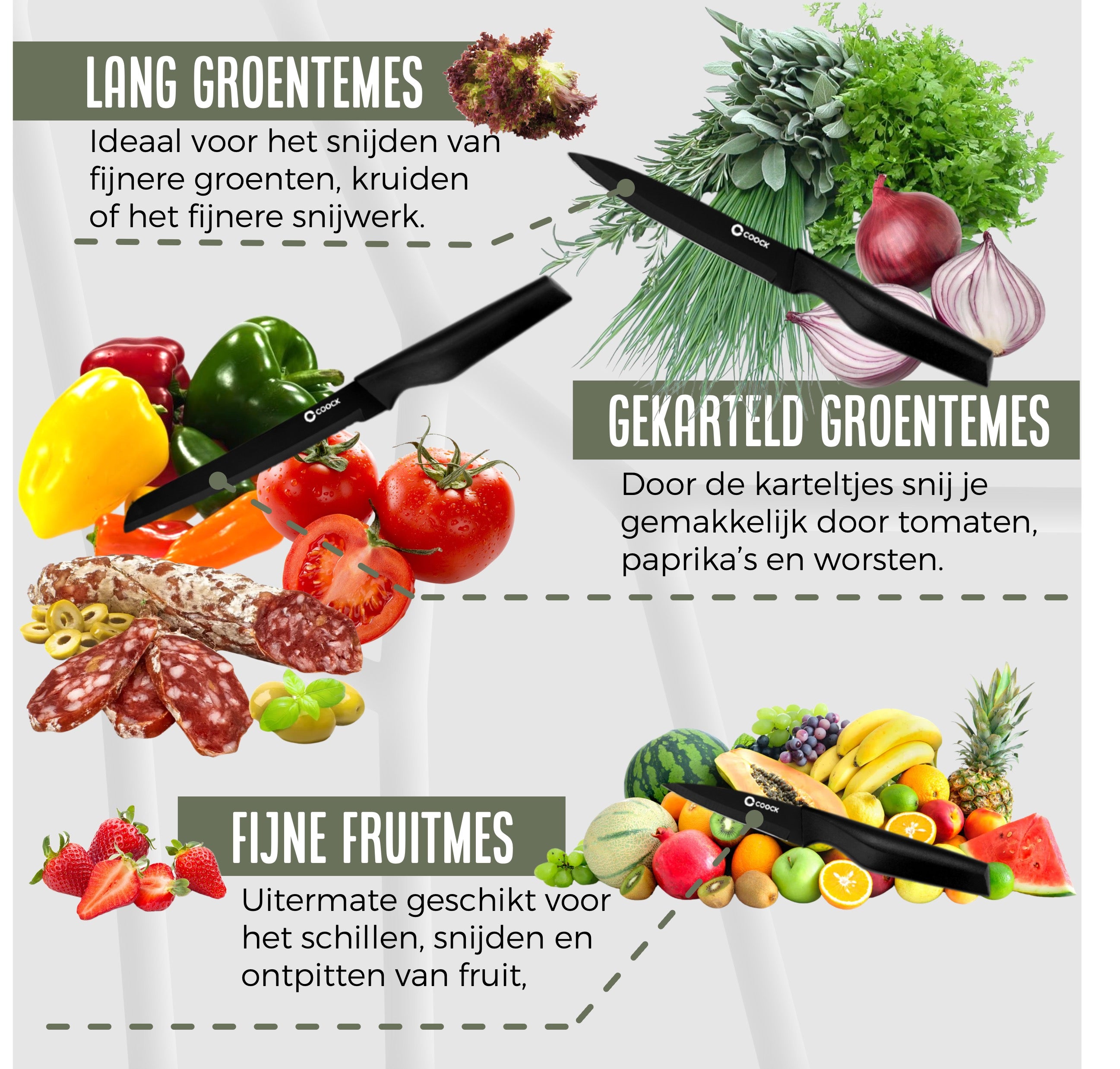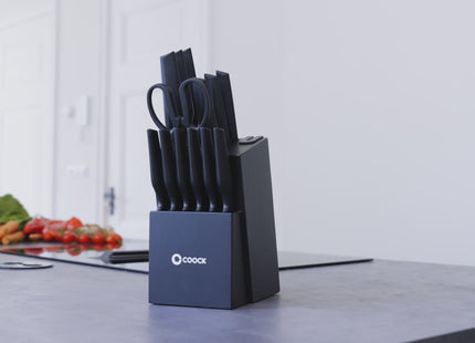Stijlvolle Messenset met Blok en gratis Snijplank – RVS/Zwart
