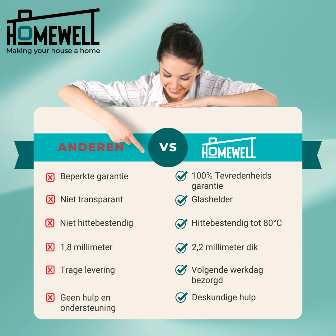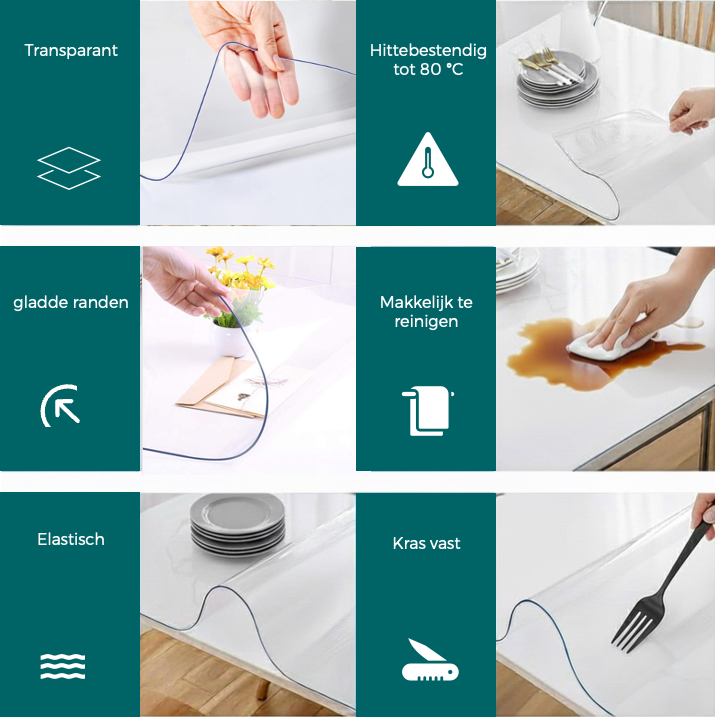 Tafelbeschermer Transparant Glashelder - Doorzichtig Tafelzeil - Anti Slip en Hittebestendig - 2,2 mm